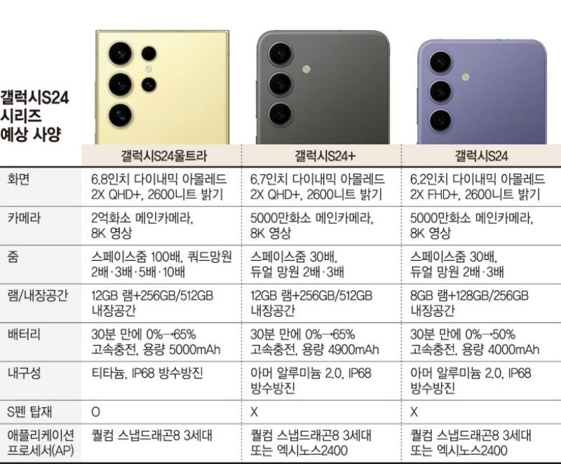 갤럭시 S24 스펙 비교 및 ​​할인 정보 필수