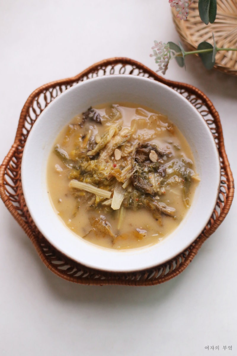 멸치육수와 사골육수, 쌀국수 반반을 멸치육수와 섞어 만든 가장 맛있는 조합입니다. 쌀뜨물은 숙성된 야채의 맛을 없애고 감칠맛을 살려주지만 멸치육수나 사골육수가 없으면 진한 맛이 나지 않습니다. 그래서 쌀뜨물 1.4리터에 육수를 넣어 베이스 국물을 만들었습니다. 대파는 어슷썰기해서 준비해주세요. 2. 야채에 양념을 해줄 때는 삶은 시래기를 양념하여 살짝 볶은 후 육수를 넣어 맛을 돋우고 푹 끓여주면 맛있게 드실 수 있습니다. 이때 된장과 함께 들기름을 첨가하면 고소한 맛을 낼 수 있다. 삶은 야채 200g, 들기름 1T, 된장 2T, 고추장 0.5T, 참치액 1T, 고춧가루 2/3T, 다진마늘 1T. 양념은 야채에 양념을 하듯 사용하세요. 된장 베이스인데 고추장을 조금 섞어야 더 진한 맛을 낼 수 있다. 3. 양념한 야채를 볶아주세요. 냄비에 야채를 넣고 약한 불로 2~3분 정도 볶아 된장 맛을 냅니다. 그다음 쌀뜨물 1.4리터를 넣어주세요. 동전육수 2개를 추가했는데 하나는 사골육수, 하나는 멸치육수입니다. 사골육수와 멸치육수를 넣어 국물을 만들어줍니다. 정말 풍부하고 맛있습니다. 여기에 멸치가루를 넣어 풍미를 더했는데 없으면 생략하셔도 됩니다. 동전육수만 넣고 끓여도 됩니다. 직접 끓여낸 멸치육수로 만들어 드셔도 좋습니다. 불을 세게 켜고 끓기 시작하면 거품을 걷어냅니다. 15분 정도 푹 끓여주세요. 약한 불로 오래 끓일수록 맛이 더욱 풍부해집니다. 육수를 한꺼번에 넣지 않고 오래 끓인 뒤 더 넣었어요. 어슷썰기한 대파를 넣고 약한 불로 15분 이상 끓입니다. 필요한 양념량에 참치액이나 간장을 1~1~1% 추가해 주세요. 굵은소금 1.5T를 넣어 마무리합니다. 오래 끓이다가 진한 향이 올라오면 들깨가루 2~3T를 넣어 고소한 맛을 더해줍니다. 매콤한 맛을 원하시면 청양고추를 넣어주세요. 식당의 하얀 국물을 원하시면 볶은 콩가루 1~2T를 넣어주세요. 5. 추가하시면 됩니다. 20분간 약한 불로 천천히 끓인 후 남은 육수를 조금씩 넣어주세요. 오래 끓일수록 맛이 깊어집니다. MJ의 후다닥 레시피 꿀팁 요약입니다. 겨울에 먹기 좋은 된장국 레시피입니다. 쌀뜨물과 멸치육수(사골육수)의 조합을 추천합니다. 삶은 야채에 양념을 하고 볶은 후 약한 불로 끓여서 풍부한 맛을 냅니다.